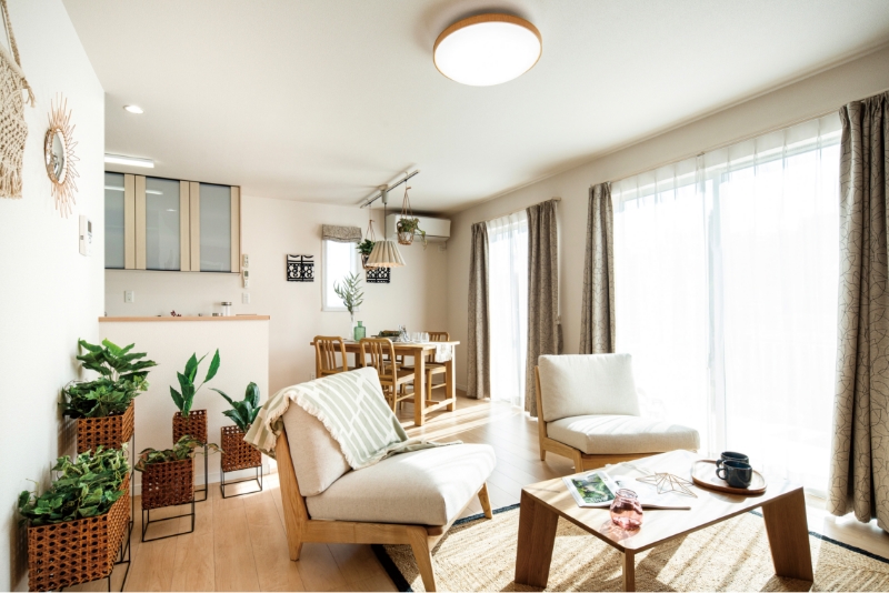 コンパクトな家というテーマをもった本物件は、決して広いとは言えない”中”の空間を少しでも快適に過ごす為”Living in Terrace”を採用。外と中のインテリアテイストを合わせ繋がりを持たせることで、空間を広く感じることができます。